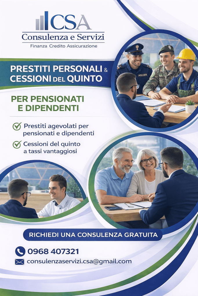 - Prestiti contro cessione del quinto dello stipendio: il prestito dedicato a tutti i Lavoratori Dipendenti con contratto a tempo indeterminato e ai Pensionati, con trattenuta diretta sulla busta paga o sul cedolino pensione. La Cessione del Quinto è una soluzione efficace, sicura e conveniente, studiata per rispondere alle piccole e grandi necessità dei clienti.